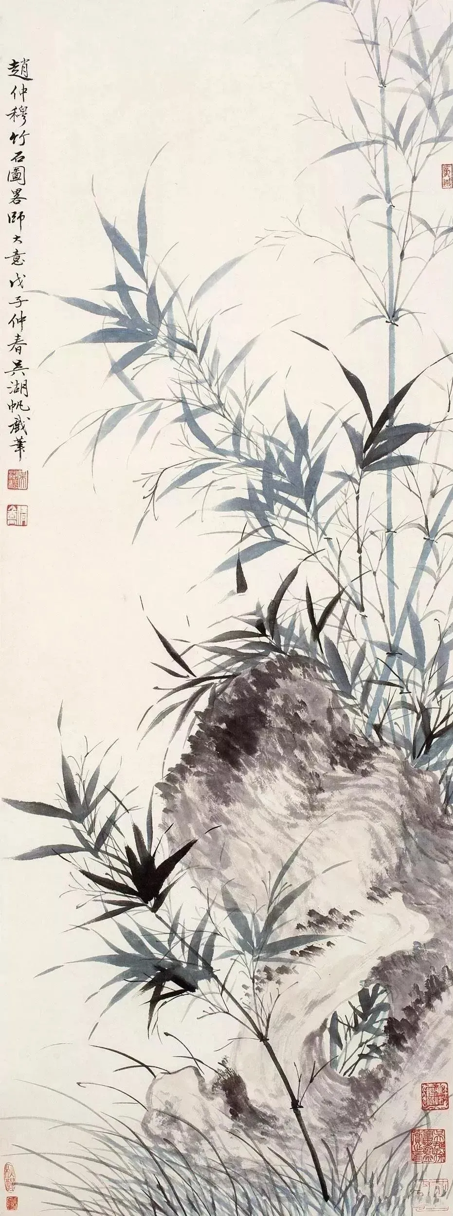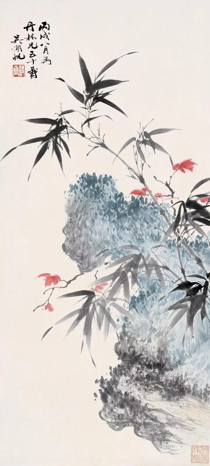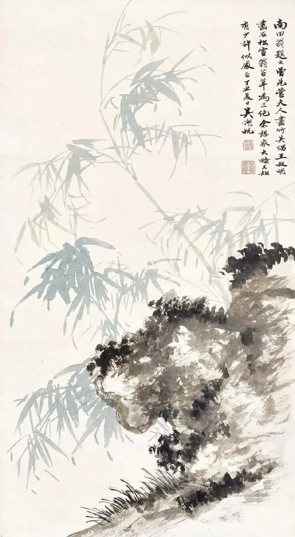 吴湖帆写竹,苍翠华滋 吴湖帆(1894—1968) 有近世画竹第一人之誉,他画竹从宋人双钩入手,又参以赵雍墨竹及恽寿平的没骨法。其笔下的竹子有疏淡清雅之韵味, 于刚健婀娜之中,流露出爽朗高洁的情趣,追求诗情词境,作品潇洒生动、苍翠华滋。