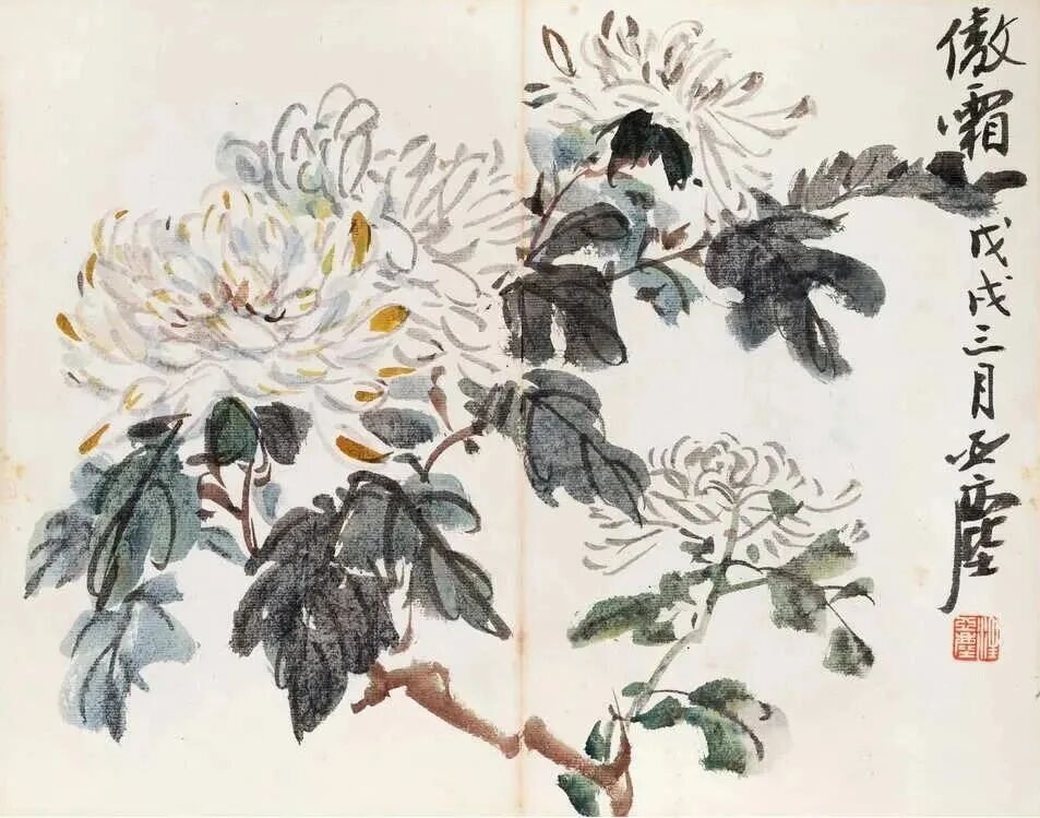 汪亚尘他除了擅长金鱼题材外,对于其它如菊花、牡丹荷花等花卉题材也展现出惊人的才华。郑逸梅曾说:“大家都知道亚尘的国画以金鱼为最胜,实则他所给的花竹翎毛,都很潇洒有致,惟山水少见而已……”在“汪金鱼”背后,隐约存在另一个我们不深知的花鸟大家汪亚尘。