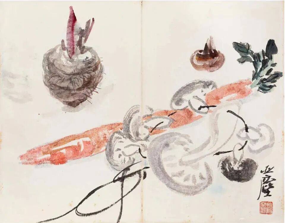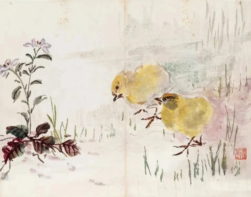 汪亚尘《花鸟画稿册》欣赏