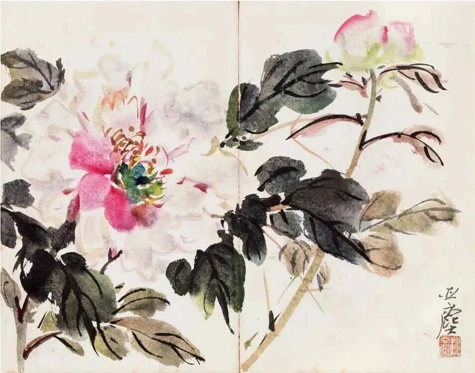 汪亚尘的花卉作品,早年与晚年的都特别精彩。早年作品,笔墨精湛,格调雅致;晚年的作品,色彩缤纷,天真烂漫。倒是中间的探索过程,作品良莠杂陈。他的此类作品的造型设色,完全把内心对自然的强烈感受和自己生活道路的情感体验有机的结合在一起,创造出了这样显著的艺术风格。