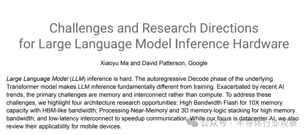 日前,由Xiaoyu Ma和David Patterson联合署名的文章《Challenges and Research Directions for Large Language Model Inference Hardware》正式发布。这篇文章被发布以后,引起了广泛关注。文章中,作者围绕LLM推理芯片的挑战以及解决方案,给出了建议。