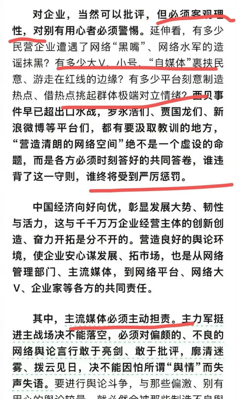 二是,先说这篇点评的一些用语,警惕别有用心,要进行舆论斗争,国家发展,极端对立,红线,营商环境等等。