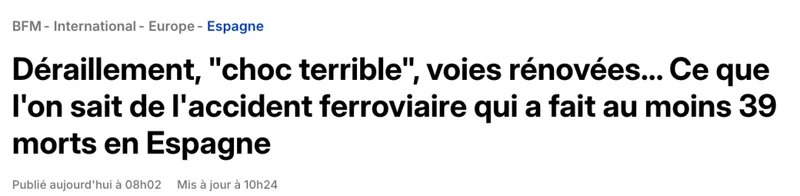 今天,几乎所有的法媒头条都是同一件事——西班牙致命高铁相撞事故。
