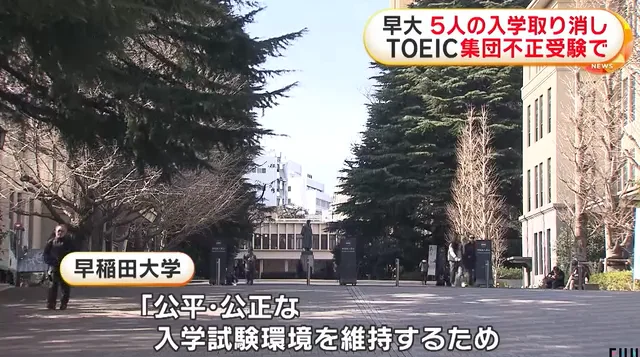 比如早稻田大学在调查中发现,入学审查所使用的TOEIC成绩中,有52人涉及不正当行为。最终处理结果也非常明确,取消入学、取消合格资格、丝毫不留一分余地。要知道,这在日本高校中,是极其严厉的做法。