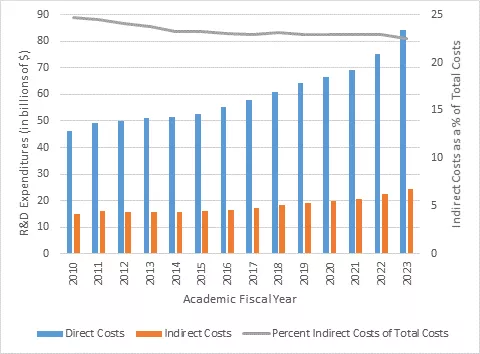 美国高等教育机构报告的年度研发直接和间接成本支出统计表