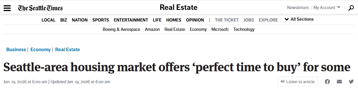 数据显示,去年该地区大多数区域的新挂牌量与成交量之间的差距持续扩大。西北多重挂牌服务公司(NWMLS)周四公布的年终数据显示,金县(King County)独栋住宅新挂牌量较 2024 年增长 10.5%,而成交量却下降 2.9%。斯诺霍米什县(Snohomish County)情况相似:新挂牌量增长 5.5%,成交量下降 4.7%。