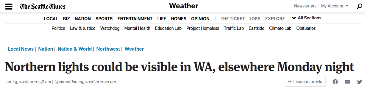 尽管周一清晨普吉特海湾地区(Puget Sound-area)出现雾气,但整体天气条件仍较为理想。美国国家气象局西雅图分部表示:“许多地区夜间天空将保持晴朗。”