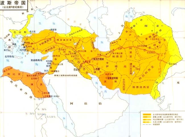 而这,居然是公元前6世纪-前4世纪就已经发生事情,比秦始皇统一六国还早了一百年,想象一下,一支数千人、装备(在那个时代)非常精良的部队,能够骑马沿着四通八达的御道进行投送。无论是抗税的部落,还是反叛的总督,都在短则数日多则月余,还无法形成气候的时候就被这支部队所无情镇压。有这样一支武装力量打底,波斯才完成了一件前无古人,但后来启发了无数来者的事情----缔造一个真正的、庞大的、横跨欧亚非三洲的大帝国。