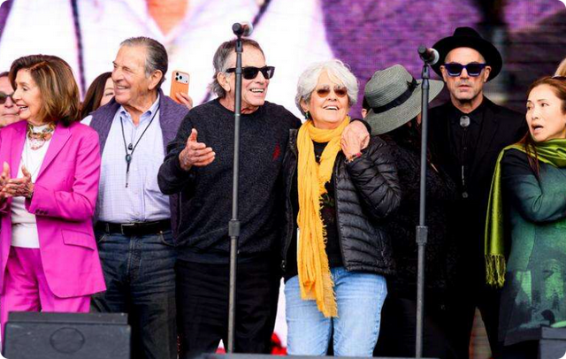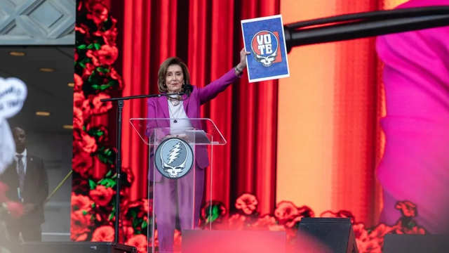 作为自称 “死头” 的佩洛西,先是在台上发表了致敬演讲,将韦尔的音乐与民主类比:“音乐就像民主,不是固定的,是我们共同创造的东西,因为鲍比・韦尔,世界变得更美好。” 但随后约翰・梅耶演唱乐队经典曲目《Ripple》时,她挤到舞台前方跟唱的画面,却让观众忍不住调侃。