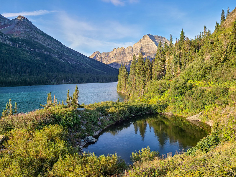 前一天我们走了漫长且壮丽的Highline Trail,今天决定休息一下,换一种节奏,寻找一份水上的宁静,于是驱车前往 Two Medicine Lake。