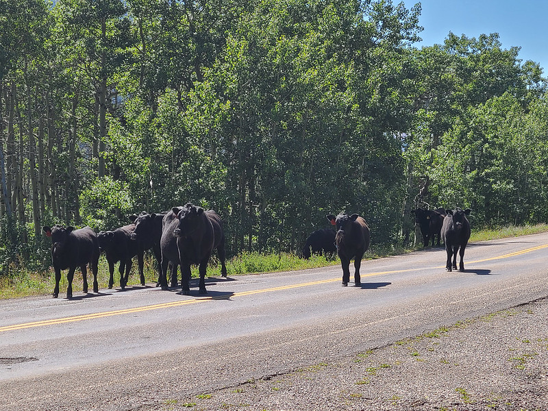 4. 回来路上遇到一群牛。这些牛野生放养,经常在公园里闲逛