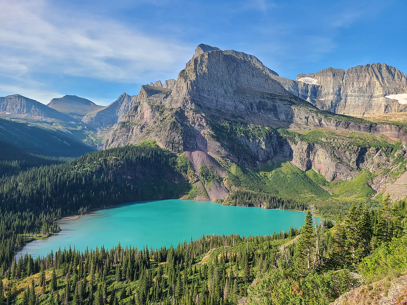 10. 渐渐爬高,俯瞰Grinnell Lake, 像一块巨大的翡翠,镶嵌在山间