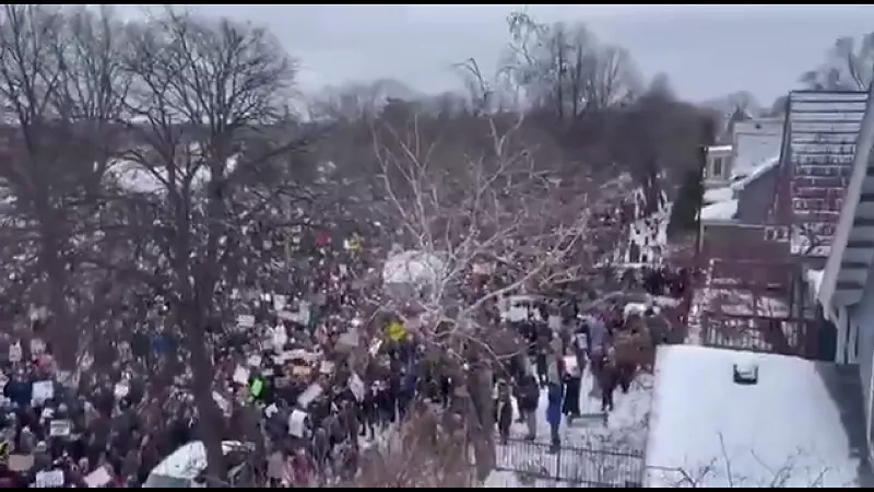 抗議者要求停止自 2025 年中期以來在全美各地開展的反移民突擊行動。引發抗議的導火索是近期 ICE 特工在一次突擊行動中殺害了一名美國公民。… pic.twitter.com/QqUhRJ5Emo