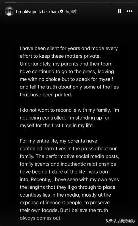 本周一,这位贝克汉姆家的长子在 IG上发布了一份长篇声明,痛陈要揭露“被掩盖的真相”,以此回击父母长期以来针对他和妻子妮哥拉・佩尔茨“向媒体散布谎言”的行为。