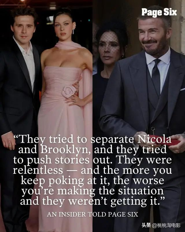 据称,大卫和维多利亚曾“反复施压并试图利诱”布鲁克林签署协议,让他“放弃对自己名字的权利”,这一切都发生在佛罗里达的那场婚礼之前。他还爆料,就在婚礼前夜,“家里的某些成员”当面告诉他,佩尔茨“没有流着我们家的血”,“不算我们家的人”。