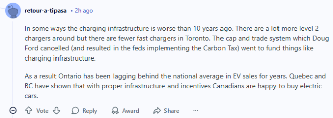 也正因为这样,安省多年来在电动车销量上一直落后于全国平均水平。魁省和BC已经证明,只要基础设施到位、补贴给够,加拿大人是很愿意买电动车的。