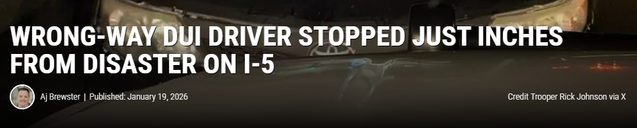 据报道,周日凌晨5点15分左右,华盛顿州巡警局连续接到多起911报警,称一辆汽车在I-5公路南向车道上逆行。