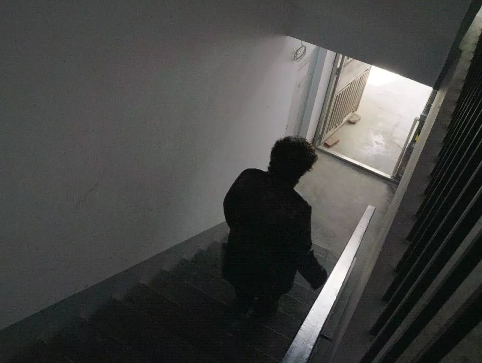 ●膝盖手术后,诸泽云只能慢慢下楼梯。