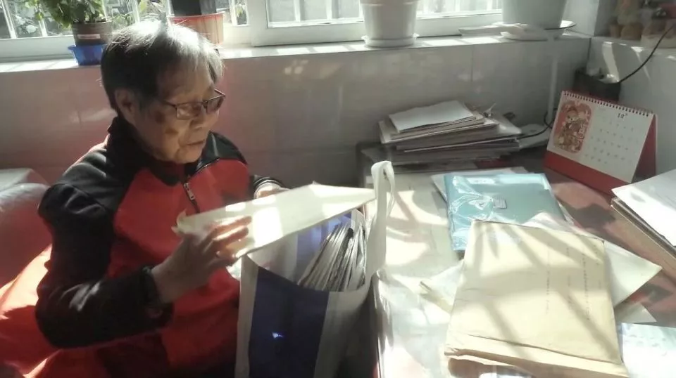 在她家,空旷的客厅无形当中,被分出了楚河汉界。老伴90多岁了,曾是石油管理局的工程师,从苏联留学归国。如今他每天在书房抄报纸,了解全球大事,抄完问他,也不记得什么。黄美英则在另一头的书桌前备课。