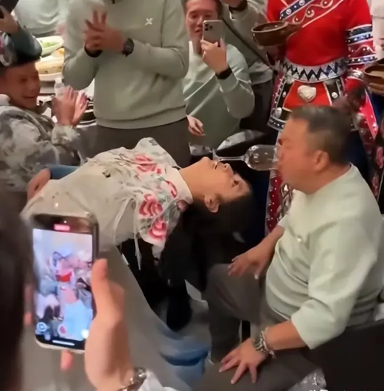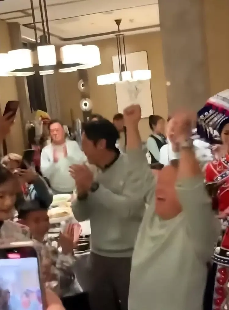 旁边明星也是欢呼鼓掌看热闹不嫌事大,还站着一堆穿着少数民族服饰的美女,