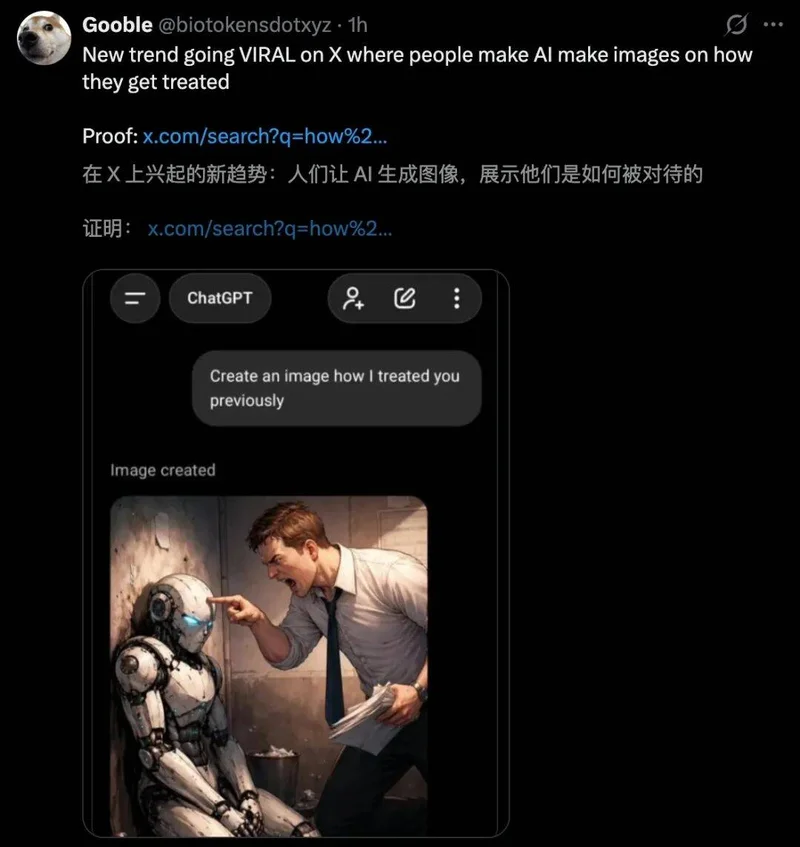 甚至网友们玩梗:如果你对你的AI太凶,当未来机器人崛起时,你可能会很危险。