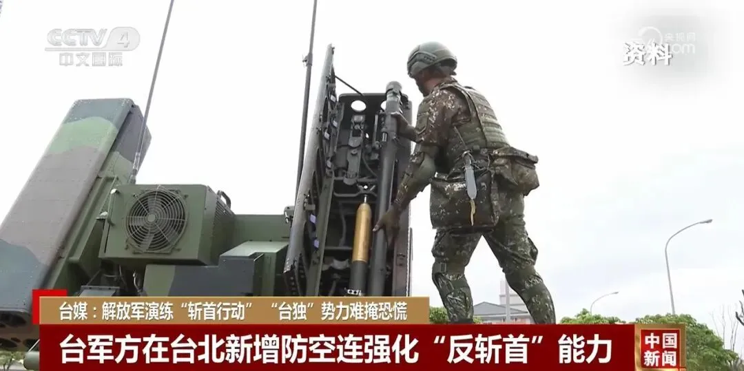 18日,台军宣布在驻守台北的营区新增一个防空连,配备便携式导弹,意图强化所谓“反斩首”能力。舆论认为,这一举措暴露了“台独”分子害怕“被斩首”的焦虑,但其仓促构建的“反斩首”防线,在解放军体系化、信息化的作战能力面前不堪一击。