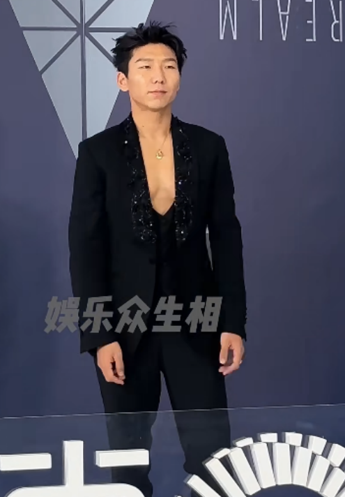 看来老哥日常的身材管理还是非常严格的,深V黑色亮片西服下,胸肌若隐若现。