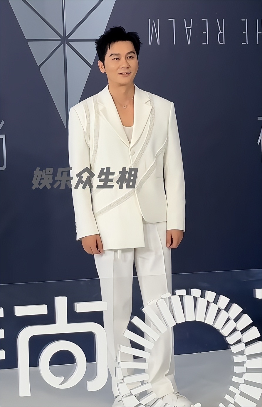 一身纯白色西装十分优雅,整个人状态不错。
