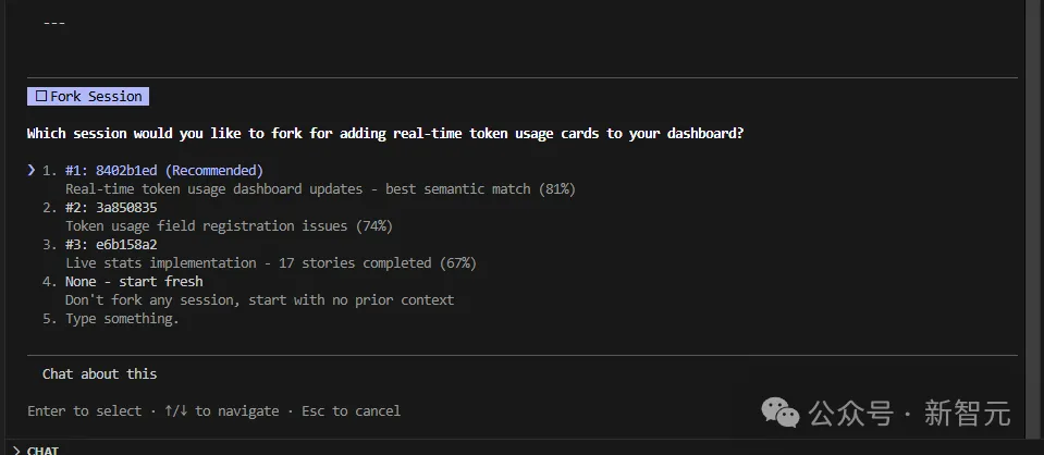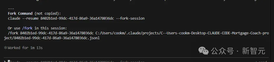 你只需要选一个最合适的会话,它就会直接给你一条fork命令,复制、粘贴到新的终端里。