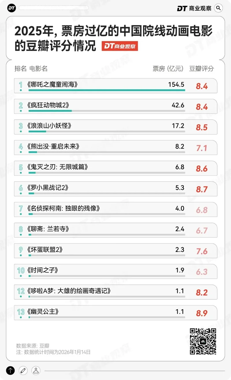所以,2025年动画电影大年,并非一时热闹,它是一次结构性的“上位”,用高口碑扛住了观众日益挑剔的审视。