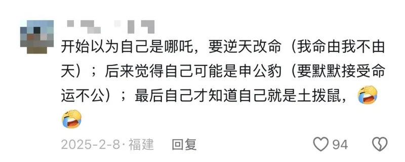 申公豹“天庭边角料,家乡小骄傲”的处境,精准映射出小镇精英成为大厂螺丝钉的现实处境;而什么都不懂就被无辜卷入、惨遭团灭的土拨鼠,像极了年轻人在社会中猝不及防成为“炮灰”的辛酸缩影。