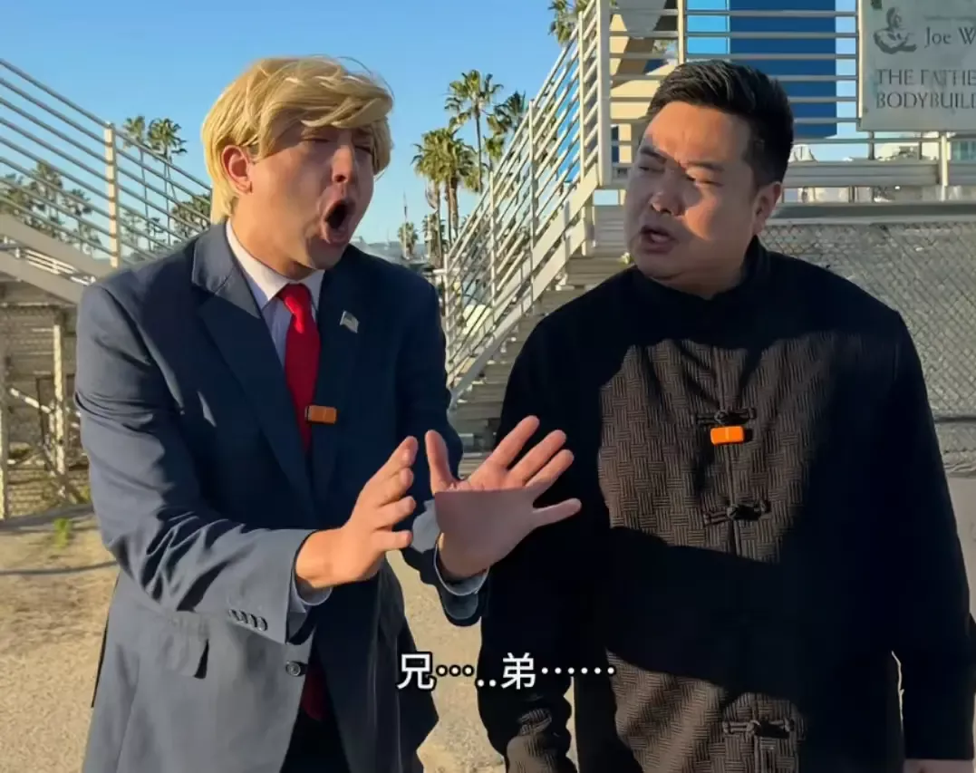 视频里,两个特朗普,一个教另一个怎么说重庆话“兄弟伙”。