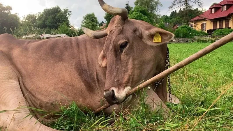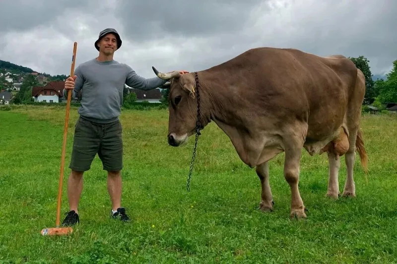 这只会用痒痒挠的天才牛名叫维罗妮卡,是一只瑞士棕牛(布劳恩维赫牛),生活在奥地利的山区牧场上。