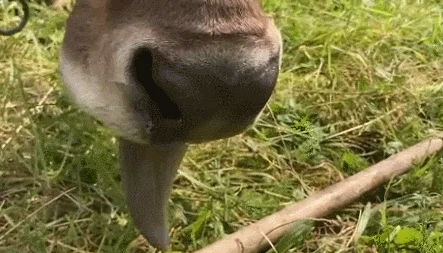 当它要挠它娇嫩的肛门区域时,它就会翘起尾巴做好准备,然后调整叼住扫帚的姿势,以确保扫帚能够到痒处。