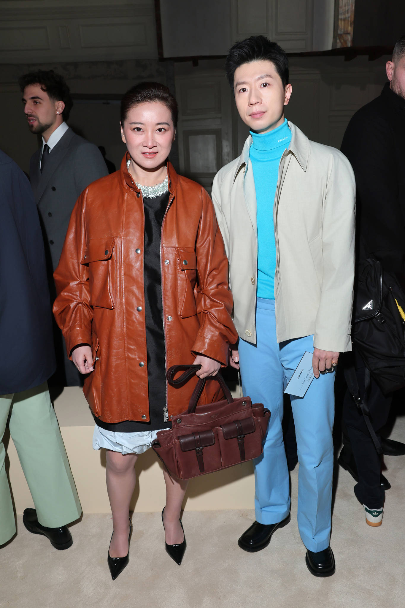 意大利当地时间2026年1月18日,贾玲、马龙出席2026-2027秋冬米兰时装周,两人同框看秀一起合影。