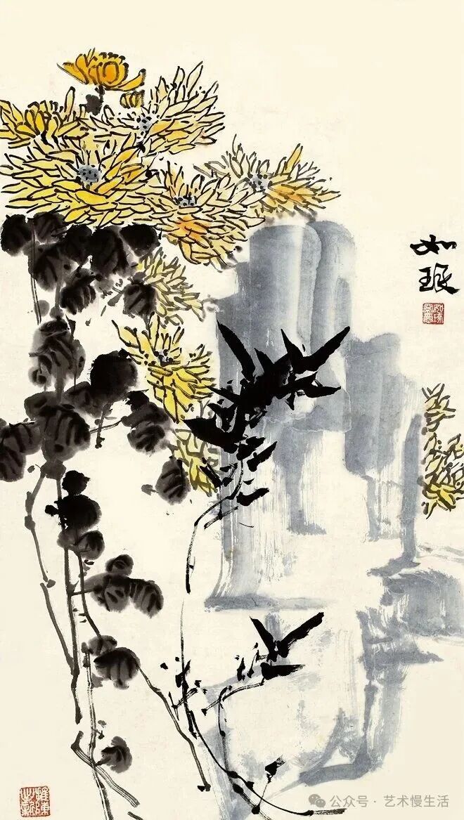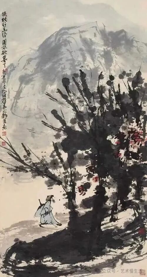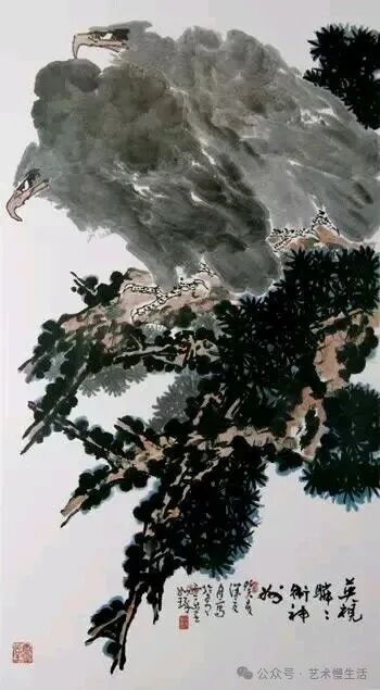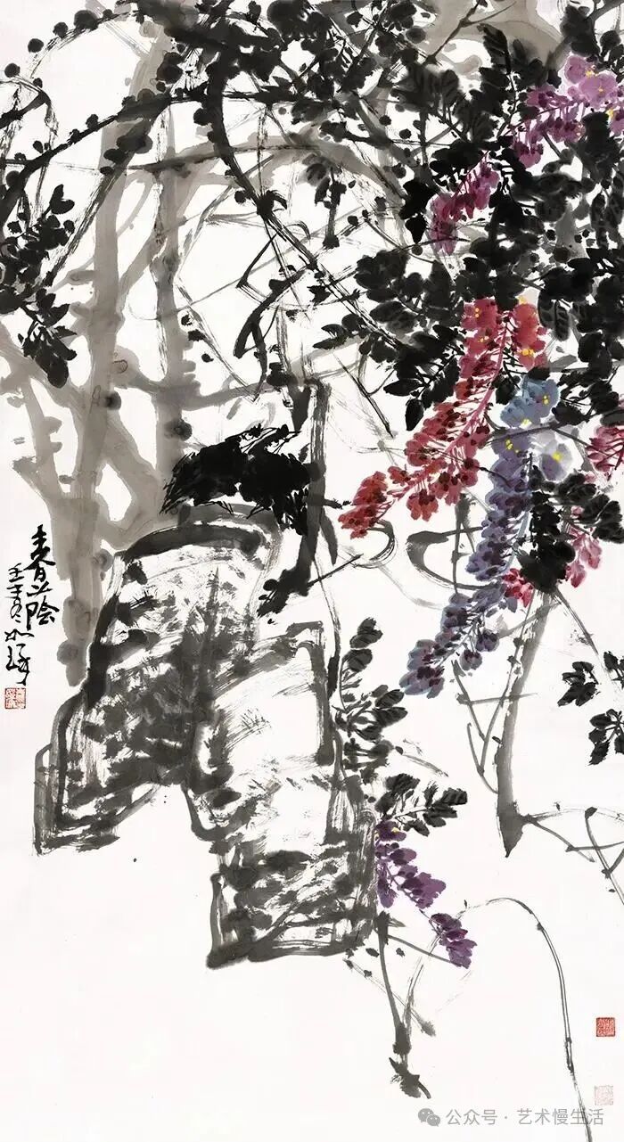 他恪守“笔墨当随时代”的艺术信条,早年取法石涛、八大山人等历代大师,临摹大量古代精品,又在游学中体悟中西艺术差异,坚守中国意象笔墨的哲学底蕴。作品兼具北派山水的雄浑苍劲与南派山水的氤氲清逸,山水题材中“天人合一”的传统哲学与当代精神追求相融,花鸟作品则于朴茂中见灵动,如《听声》《飞雪伴春》等代表作,既显山川雄奇,又含笔墨秀润,气韵生动且意境深远。