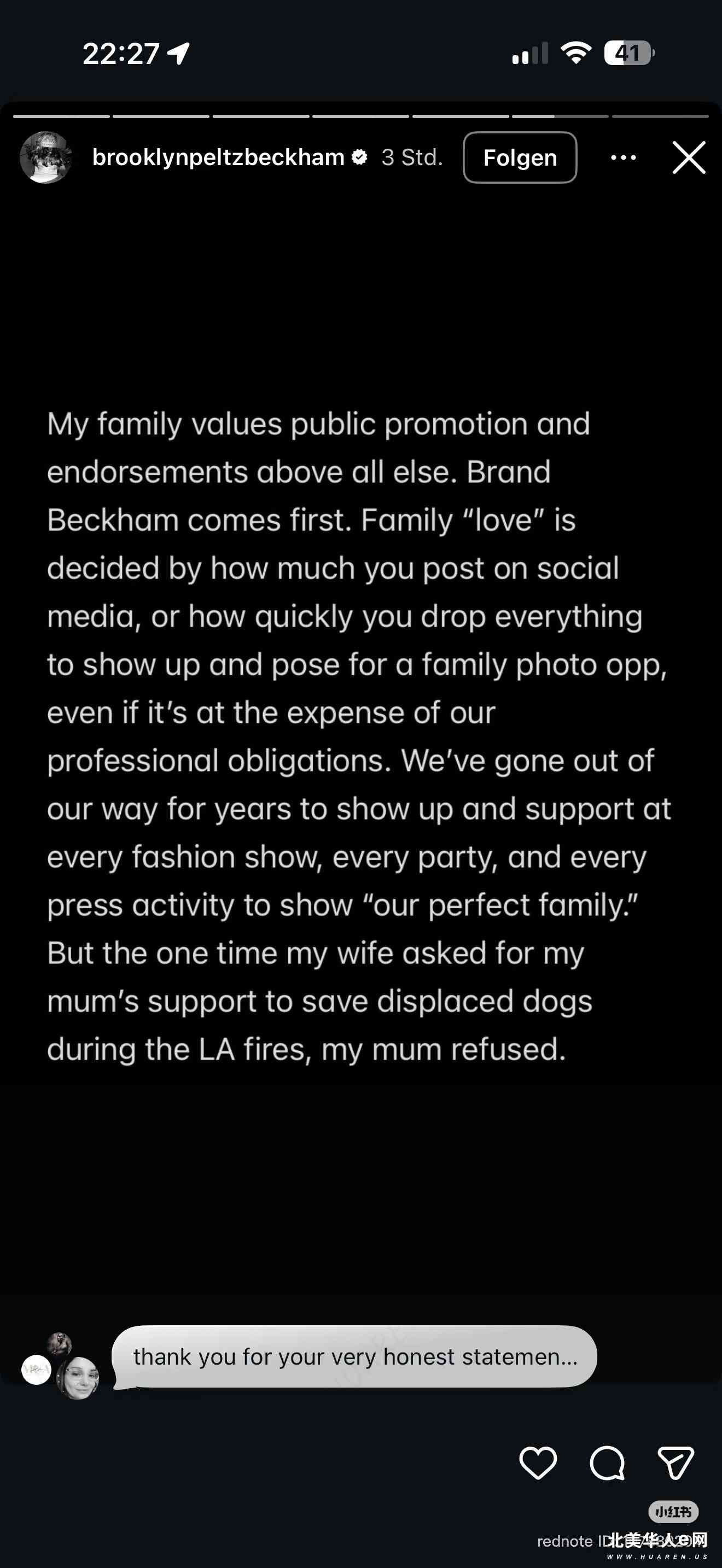 贝克汉姆大儿子终于爆发吐槽长文