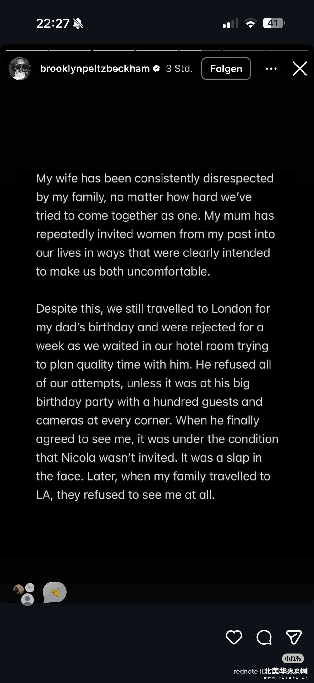 贝克汉姆大儿子终于爆发吐槽长文布鲁克林汉姆X号