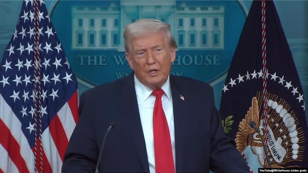 川普总统在他的第二届任期进入第二年之际在白宫举行记者会。(2026年1月20日)