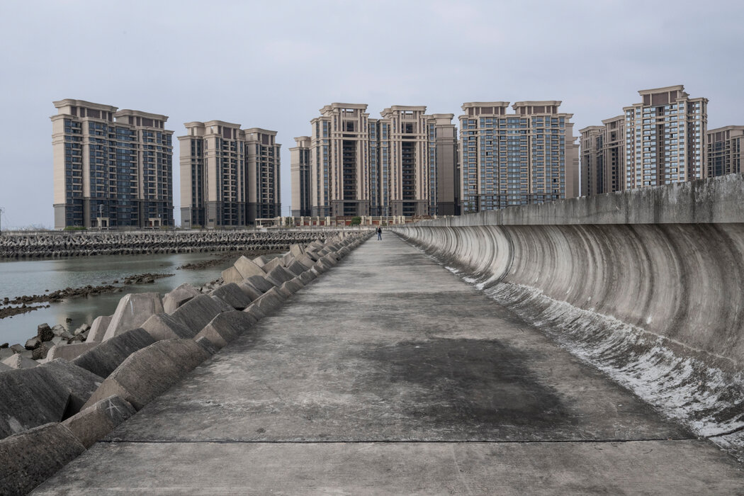 即便投入如此巨资,仍远不及恒大宣称的、为建设可容纳20万人居住的住宅所需的230亿美元。这也让海花岛陷入了进退两难境地。破产前,恒大称已建成并交付6万套住宅,但其余建筑大多只打下水泥地基,如今它们被雨水淹没,竟成了垂钓地点。39栋接近完工却从未开售的高层住宅如今孤独地矗立在满是瓦砾的荒地上。