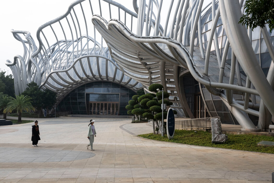 游客漫步于海花岛会议展览中心的展馆之间。开发商恒大集团为这个集零售、住宅和娱乐于一体的综合体投入了约120亿美元。
