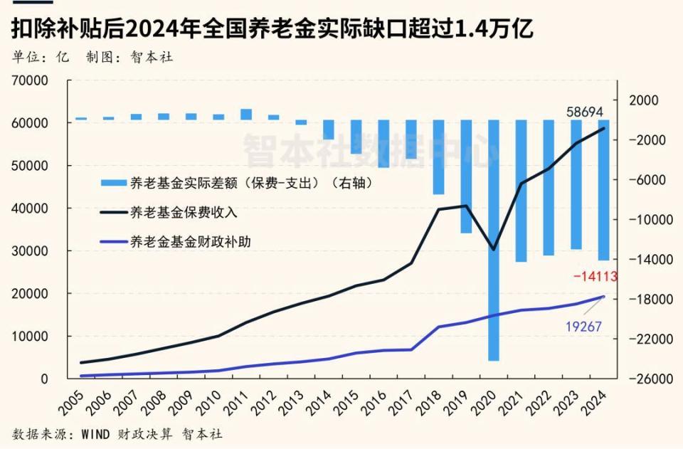 而改革背后,是日益严峻的现实:截至2024年底,全国基本养老保险基金累计结存8.7万亿元,但当年实际支出缺口已达1.41万亿元(剔除财政补贴后)。更令人忧心的是,若无财政持续输血,现有结存将很快耗尽。