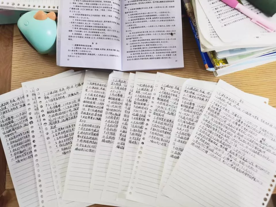 2024年5月7日,伍小青抄写学生手册十遍的图片。(受访者供图)