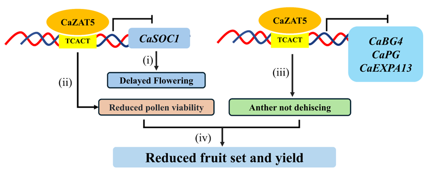 CaZAT5调控开花时间、花粉发育和花药开裂的工作模型 四川农大供图