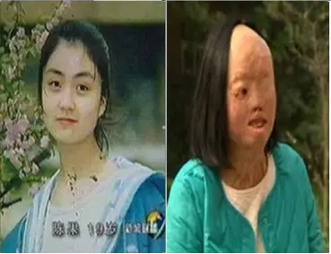陈果,女,1981年5月生,音乐学院学生,1996年开始随母习练“法轮功”,全身烧伤面积达80%以上,深三度烧伤近50%,与母亲郝惠君完全丧失生活自理能力。