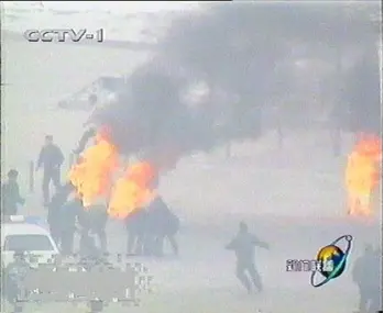 约4分钟后,5名自焚者身上的烈火全部被天安门地区公安民警迅速扑灭。