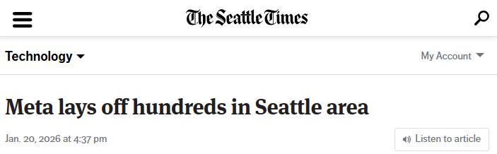 作为其虚拟现实部门更广泛裁员计划的一部分,Meta公司将在普吉特海湾地区裁员331人。