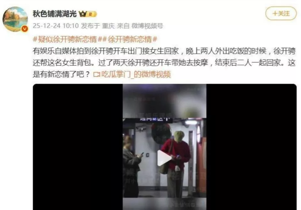 2025年12月,徐开骋被拍到开车接送一位短发女生回家,主动帮她背包,两天后又带她去按摩店。