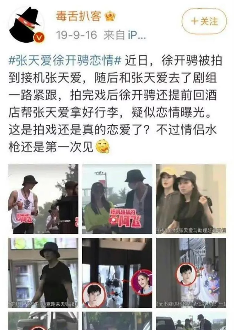 2019年,徐开骋和张天爱在《我的漂亮朋友》剧组相遇。彼时的张天爱凭《太子妃升职记》稳坐一线,徐开骋却只是个名不见经传的小演员。片场里,徐开骋的体贴无微不至:递水、披外套、记喜好,甚至帮张天爱整理造型。这种“量身定制”的温柔很快攻陷了张天爱,她不仅亲自为他挑衣服、对台词,还动用人脉为他争取资源。