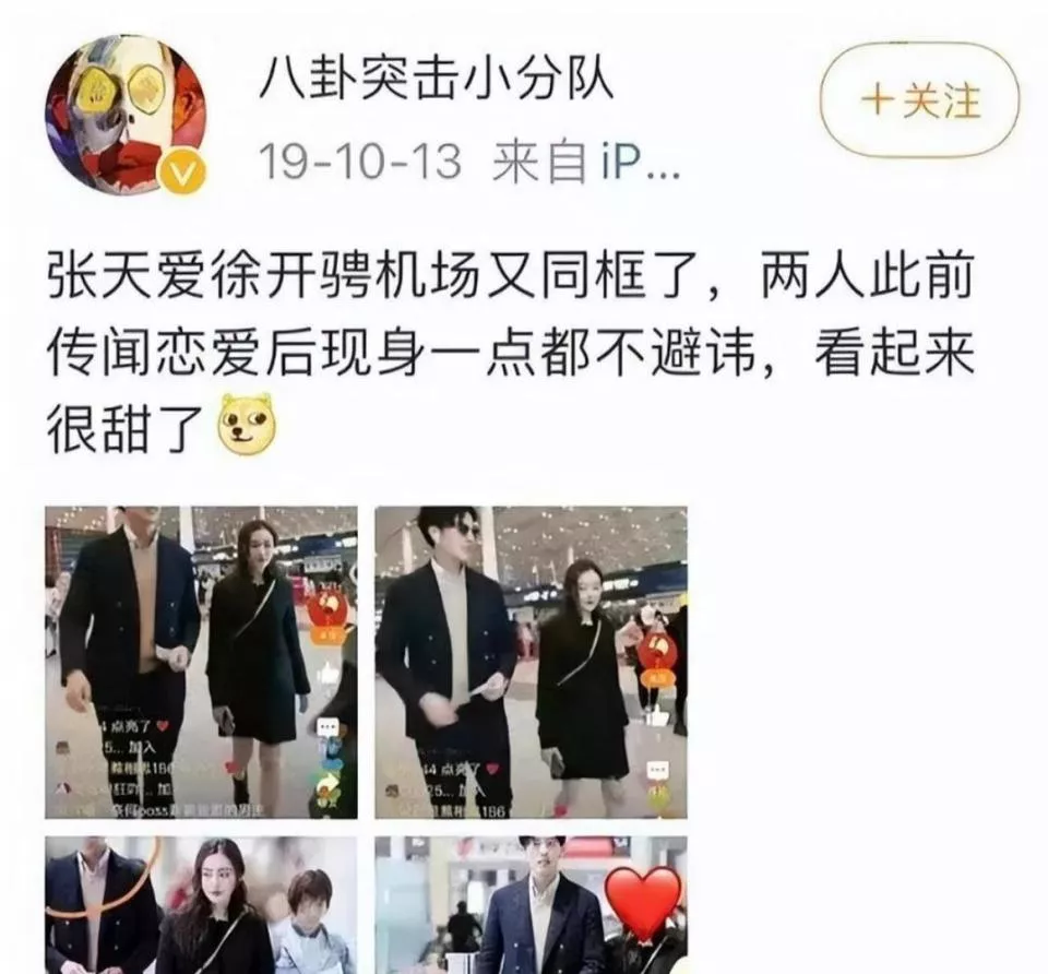 徐开骋在无锡机场接机张天爱,两人穿情侣装,家具同款,甚至被曝同居。